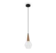 Арматура - металл, цвет — чёрный. Декоративные крепления и вставки цвета латуни. Тканевые абажуры в форме конуса из микса теплых цветов: бежевый и коричневый. Открытые верхние основания абажуров пропускают дополнительный свет. Динамичный дизайн в стиле Casual. Источник света — лампа с цоколем Е14.